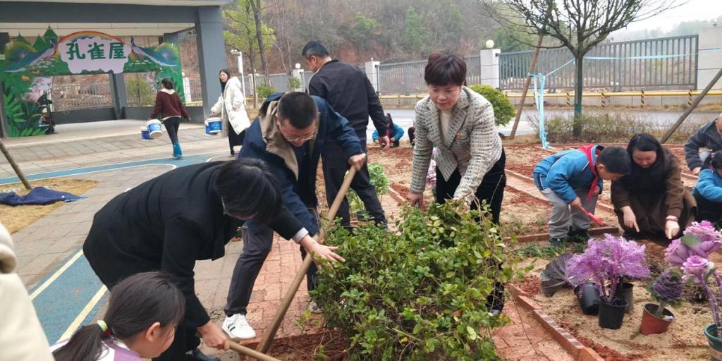 在种植活动中,卢芳国教授带头参加种植活动,为大家讲解各种中草药的名称、科属、功效等,耐心解答师生们的疑问。在家长志愿者的带领下,师生家长分工合作,挖坑、放苗、培土、浇水,大家干劲十足,现场一片热火朝天的景象。