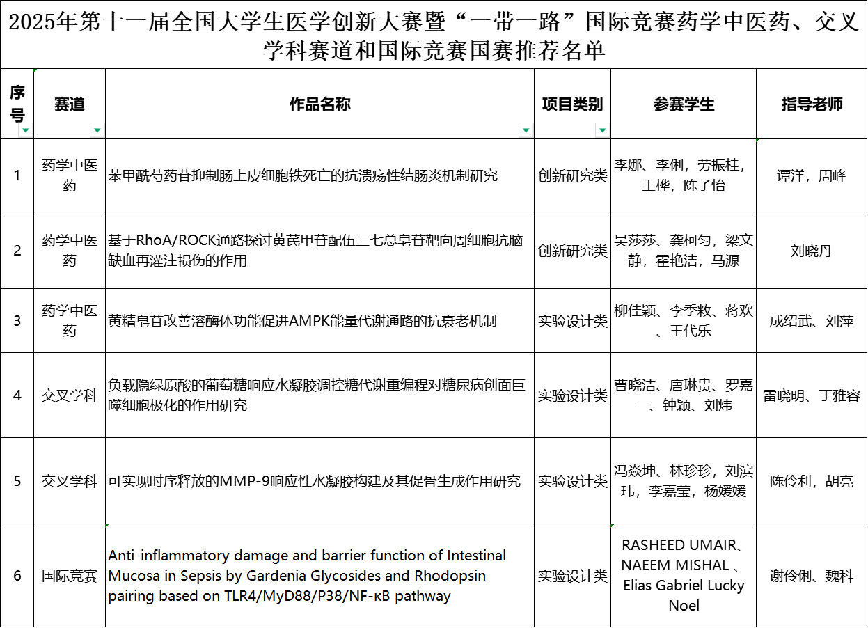 本次大赛不仅是一场学术竞技盛会,更搭建了深化医学教育改革、促进中医药传承创新与国际医学交流的重要平台,为健康中国建设和医学未来发展注入了青春动能。我校推荐的10个作品中有6项获得一等奖,远超主委会设定的全国院校一等奖比例20%,期待下个月全国总决赛中选手们的突出成绩。