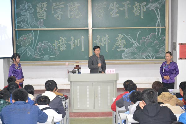 2012年11月8日晚,医学院在1207教室举办了学生干部培训讲座,由院党总支书记肖子曾教授担任主讲,院党总支王健副书记、学生科老师、分团委学生会及各班班委共同听取了肖教授的精彩讲座。
