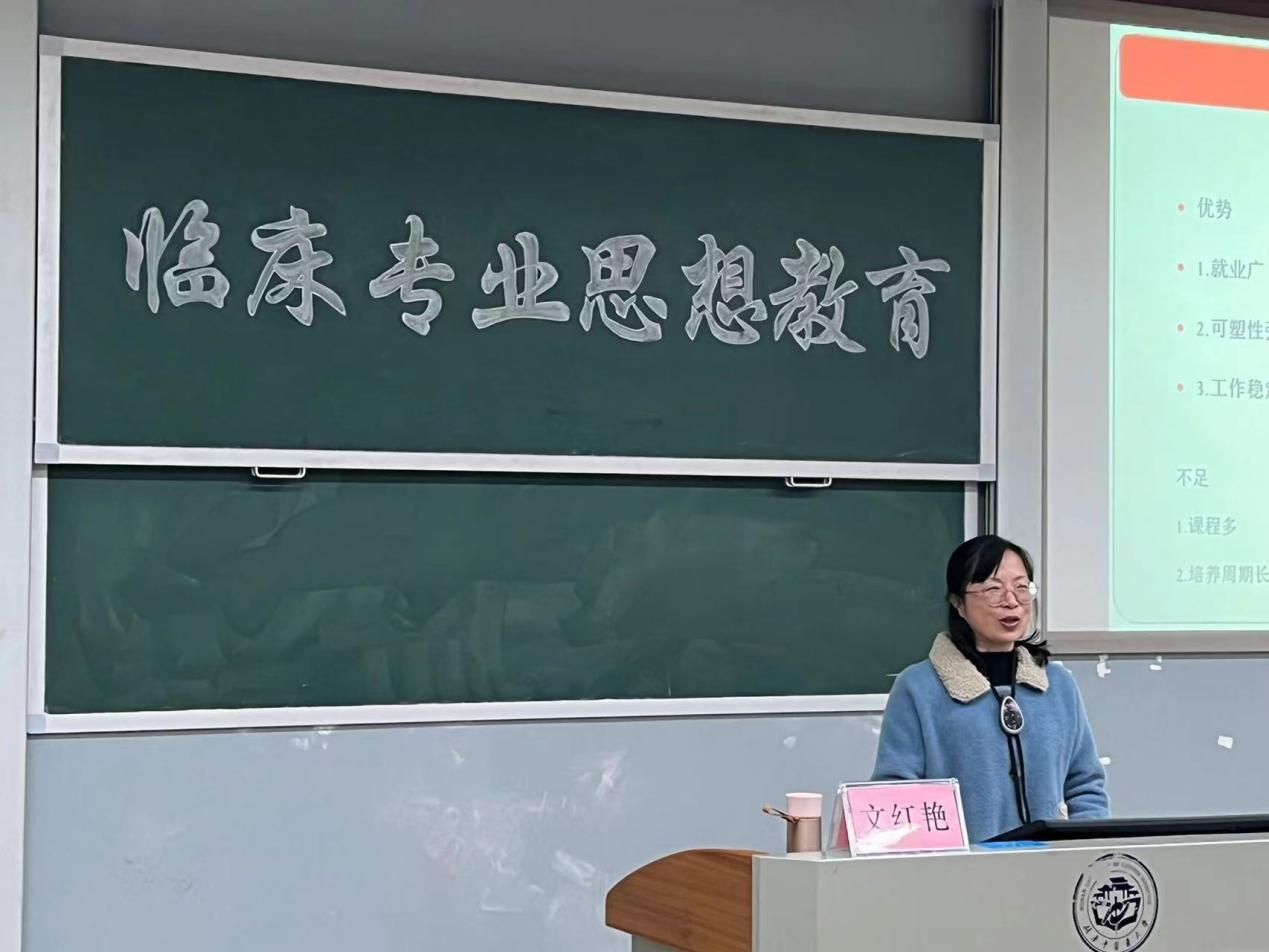 12月10日晚,文红艳以“追梦医学,不负韶华”为主题,就“医生的形象”、“为什么要选择做一名医生”、“我的医学梦”几个问题展开临床医学专业思想教育讲座,并讲述了94岁医学泰斗伍汉文的事迹,充分激发同学们对责任、初心、定位和使命的思考。