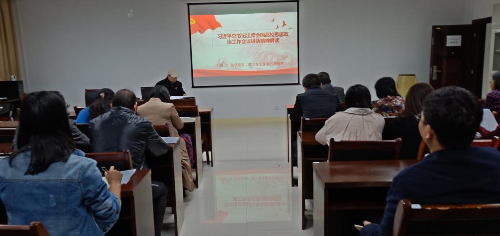 10月25日下午,医学院第二职工支部在学院会议室召开主题为“习近平总书记出席全国高校思想政治工作会议讲话精神解读”的党员学习活动。学习活动由支部书记杨胜辉老师主持,医学院邓常清院长、湖南省党代表卢芳国老师和支部其他党员共计20人参加了学习。