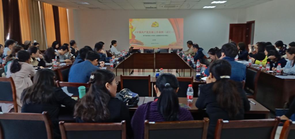 医学院党委书记文红艳带领大家学习了新的《中国共产党支部工作条例(试行)》,介绍了党支部工作条例出台的背景及意义,条例指明了基层党支部的奋斗方向,基层党支部需要能够引导并动员基层群众,积极推动改革发展,为“中国梦”的实现助力。接着对条例进行全文逐章重点解读,重点强调了支部“三会一课”制度,指出各支部要按照《条例》规范支部工作,发挥支部战斗堡垒作用。
