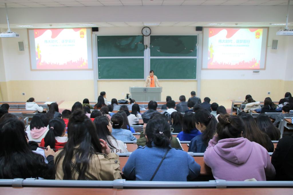 庹勤慧副院长以《伟大时代,逐梦前行》为标题做了关于两会精神的演讲。副院长给大家分享了自己作为人大代表参与会议的经历,传达学习了十三届全国人大二次会议的主要精神及全国两会上习近平总书记的重要讲话精神。