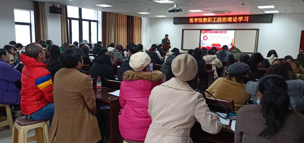 12月4日下午,我院在医学院会议室组织教职工政治理论学习,学习深刻认识“八个明确”和“十四个坚持”的科学内涵,本次学习活动由医学院党委书记文红艳主持,会议邀请了雷晓明副院长进行辅导授课,我院全体教职工参加学习。