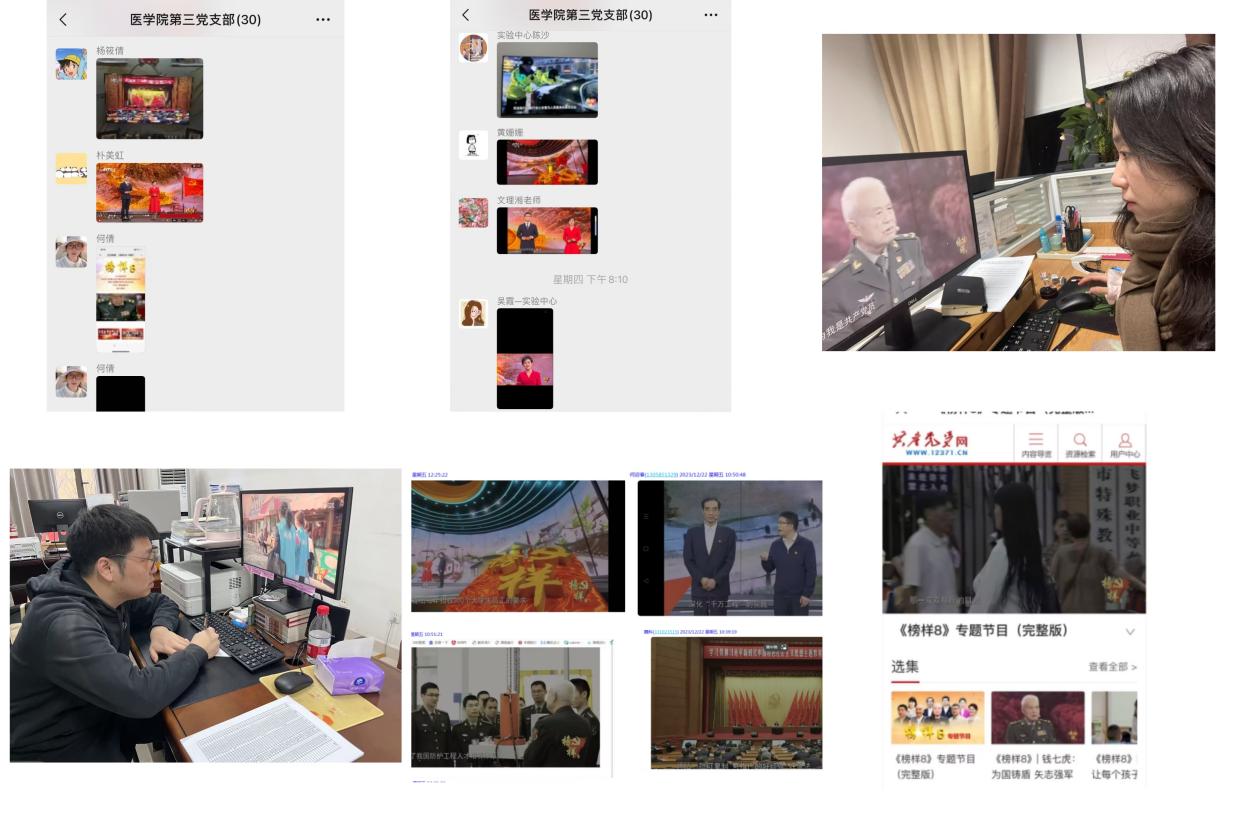 为深入学习贯彻习近平新时代中国特色社会主义思想,在全院形成“观榜样、学榜样、做榜样”的浓厚氛围,医学院党委于12月21日组织全体党员通过线上线下集中学习的形式收看《榜样8》专题节目,并分享心得体会。共计3个职工党支部、8个学生党支部、近400位师生党员参与本次活动。
