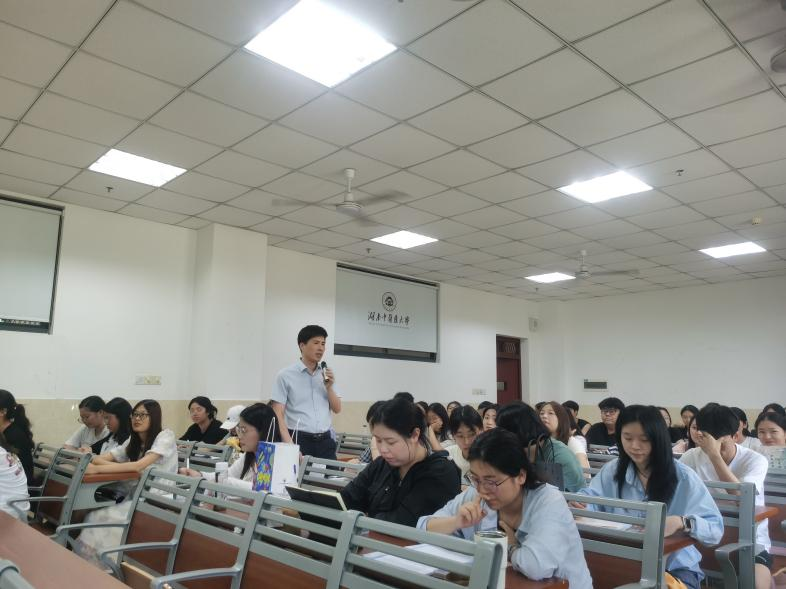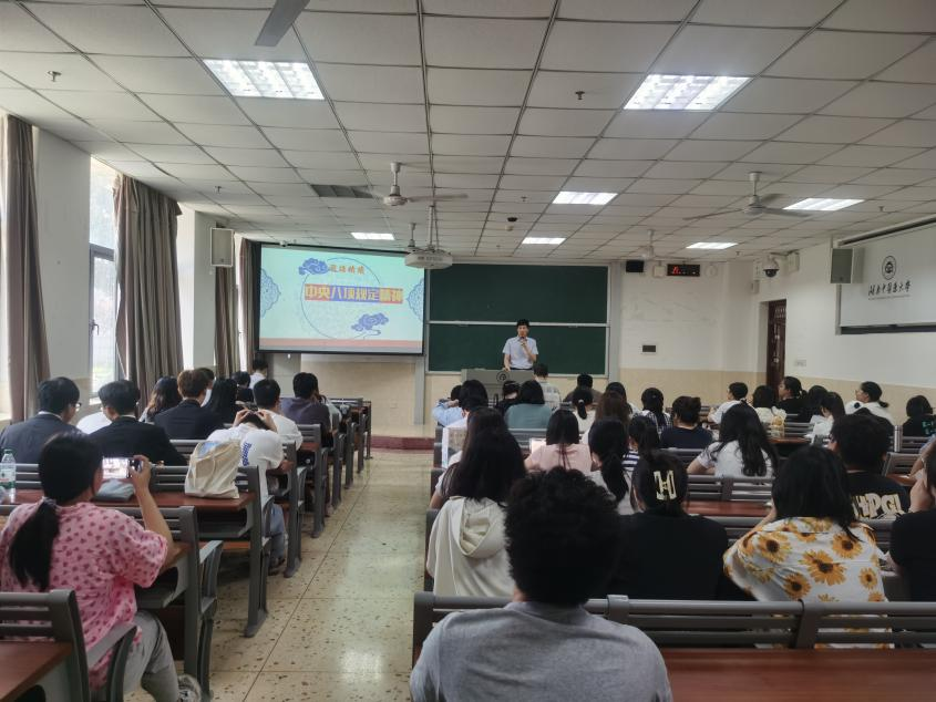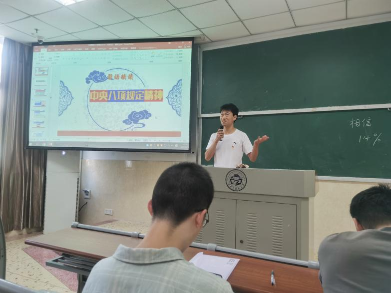 6月5日下午,我院第三学生党支部、研究生党支部创新开展了一场“师生同台话初心”的沉浸式党课活动。这场别开生面的党课采用“双主讲人”模式,由学院党委委员、唐群副院长与研究生支部“学生党员先锋”高海波同学联袂主讲,通过“理论阐释+青春告白”的独特形式,为现场100余名师生呈现了一场既有理论高度又饱含青春温度的特殊党课。唐群以“习语精读·中央八项规定精神”为主题进行专业解读,高海波同学则结合个人科研经历讲述“00后党员的成长答卷”,二者相辅相成,实现了理论宣讲与青春实践的完美融合,让红色教育焕发出新的时代光彩。