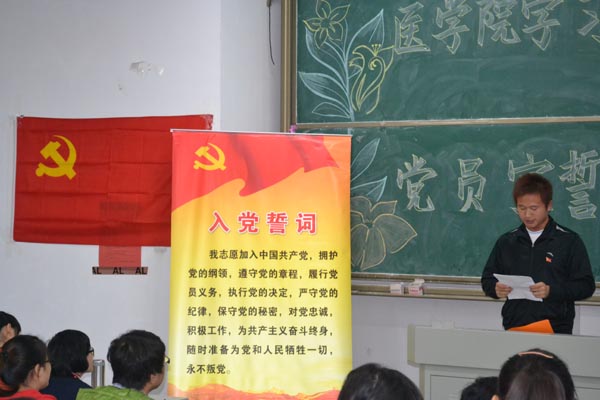 ,在党的十八大胜利召开之际,湖南中医药大学医学院在1206教室举行了学习党的十八大精神暨新党员宣誓和授牌大会。医学院学生管理科老师、新老学生党员共同参加了此次大会。
