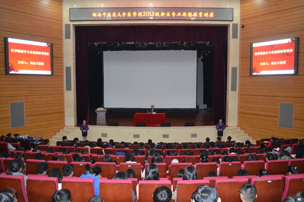 11月11日晚,副校长葛金文教授在大学生活动中心为医学院2013级新生作专业思想教育讲座。医学院党总支王健副书记、学生管理科老师及630多名新生共同聆听了讲座。