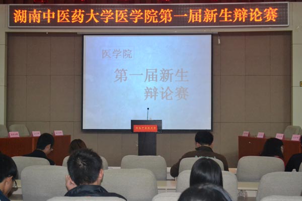 10月18日晚上,湖南中医药大学医学院第一届新生辩论赛在国际交流中心成功举办。医学院学生科李明哲老师、盛凯琳老师及分团委学生会各干部参加并担任评委。经过三场激烈的辩论,12级临床1班荣获一等奖,12级影像1班获二等奖,12级影像2班和12级临床4班分获三等奖。