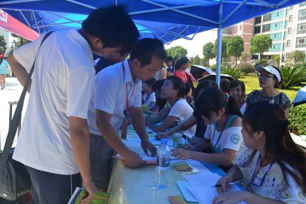 整个校园中都是匆匆的脚步,在各个接待点处,都随处可见志愿者的身影。他们默默地做着幕后工作,为家长、同学、工作人员递出的一杯水、送出的一句问候、给予的一把帮助都显示出他们细心关怀、热心助人。