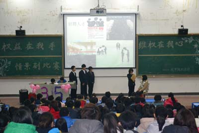 祁老师进行了总结讲话,他对各队伍的精彩表演表示欣赏和肯定,并希望同学们在以后的生活中,要树立维权意识,真正做到权益在我手,维权在我心,有事都帮忙,大家都开心。