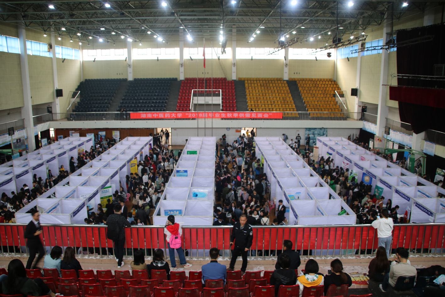10月22日,湖南中医药大学"2018届毕业生秋季供需见面会"在东塘校区体育馆顺利举办。全国各级各类医院、医药公司、企事业单位共126家用人单位以及我校包括医学院644名毕业生在内的3400多名毕业生参加了此次供需见面会。