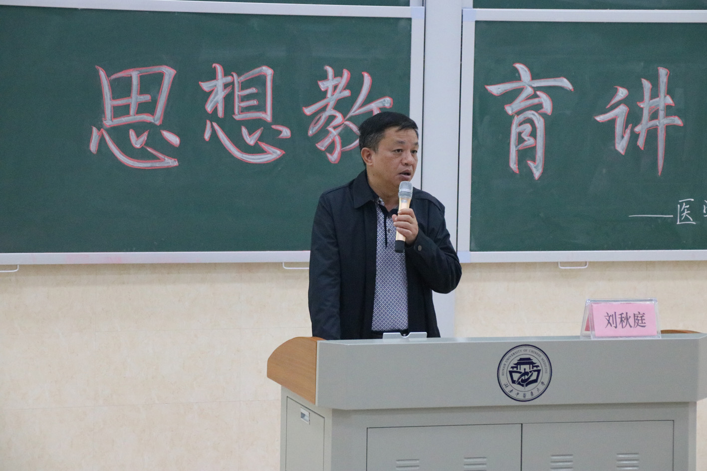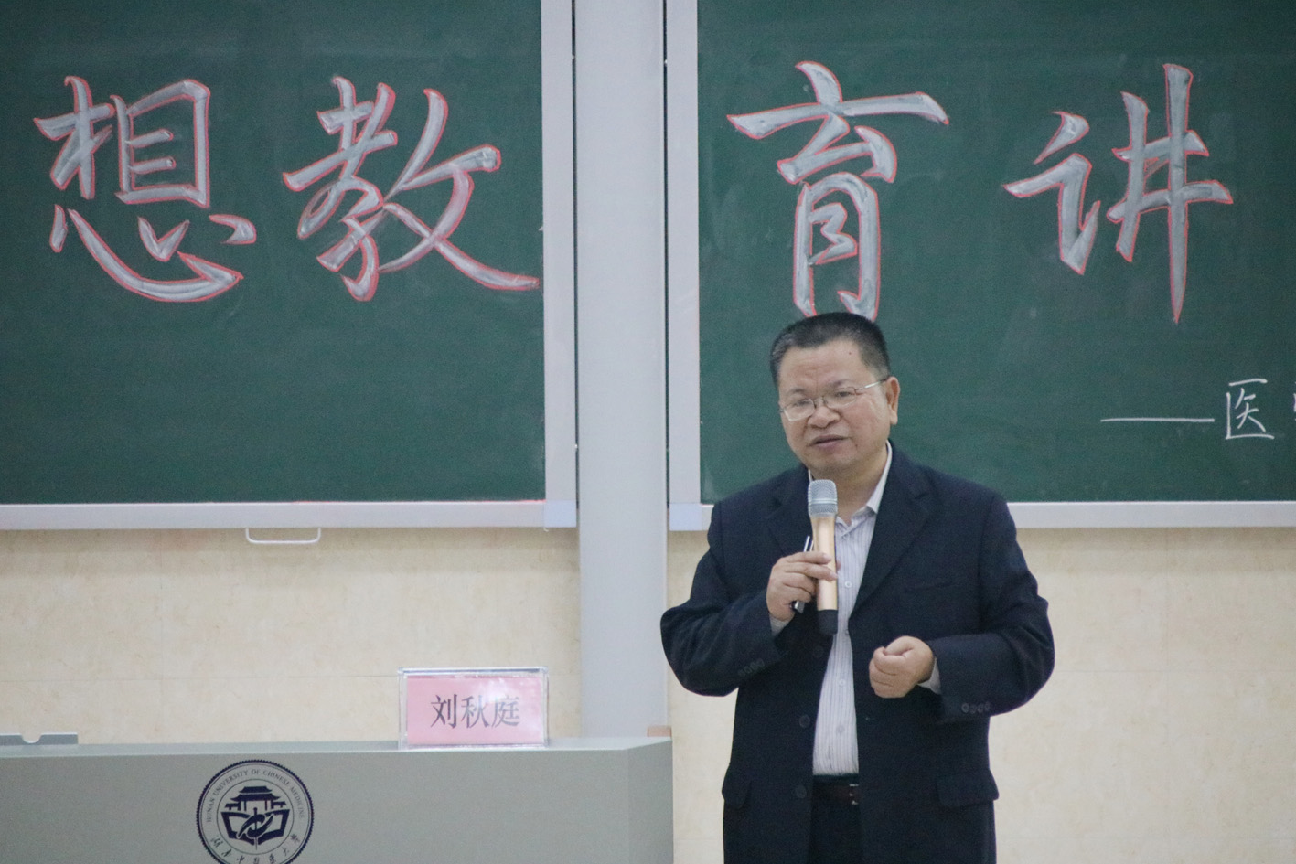 11月7日晚,湖南中医药大学医学院“2017级临床医学专业思想教育讲座”在3417教室顺利开展。此次教育讲座由来自湖南中医药大学医学院临床医学专业负责人刘秋庭教授主讲,医学院院长邓常清,医学院免疫学教研室刘碧源副教授,医学院学生管理科老师及2017级临床医学专业的全体同学共同参加了此次讲座。