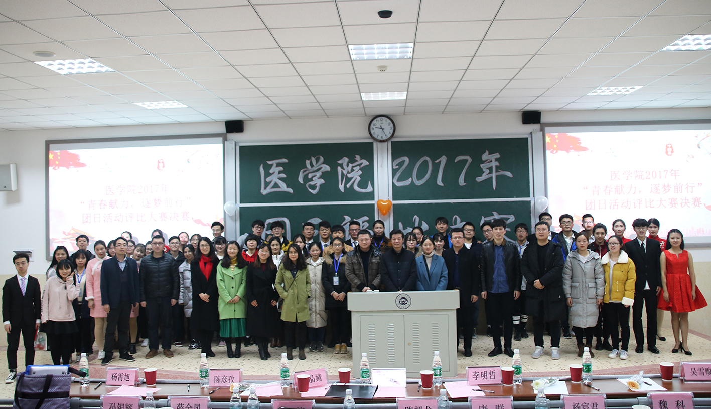 为积极响应团委学习党的十九大精神的号召,让团员对党团精神有了更深一步的认识,引领学生团员们树立更崇高的人生理想、更团结的班级凝聚精神,12月4日晚,湖南中医药大学医学院2017年“青春献力,逐梦前行”团日评比决赛在3116教室圆满落幕。医学院党委副书记王健、学生管理科老师、各班班主任、分团委学生会、学生党支部与2015、2016级各入选优秀班级团支部共同参与了此次精彩纷呈的赛事。