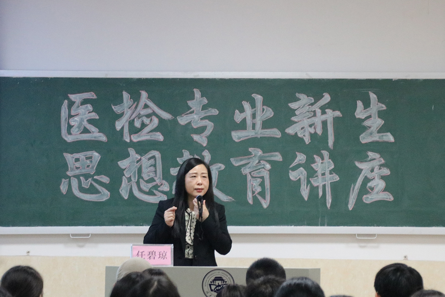 任碧琼教授通过提出“人生该怎么过?”的问题切入讲题。除此之外,还告诉同学们如何面对求学从医道路上的迷茫,教授说:“迷茫很正常,只有保持积极向上的态度,才能成功度过特殊的成长阶段。”紧接着还以自己亲身经历为例,给同学们传授经验:面对问题要冷静处理,学会分析;要努力提升自己的专业素养,机会是留给有准备的人;同时也要自己创造机会,敢于创新和突破;身为医学生,为自己为学校为社会责无旁贷,有梦才有追求。