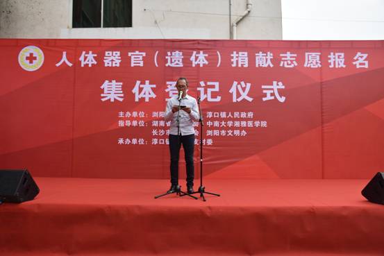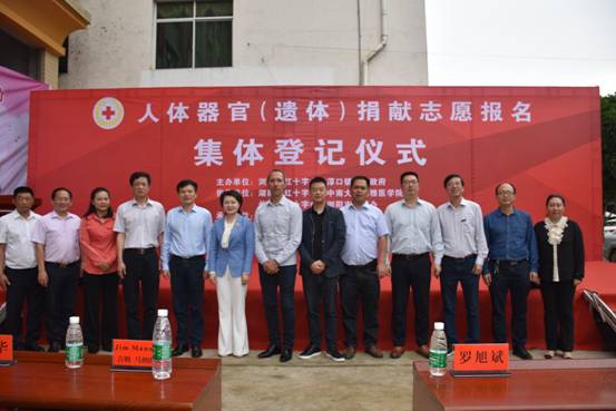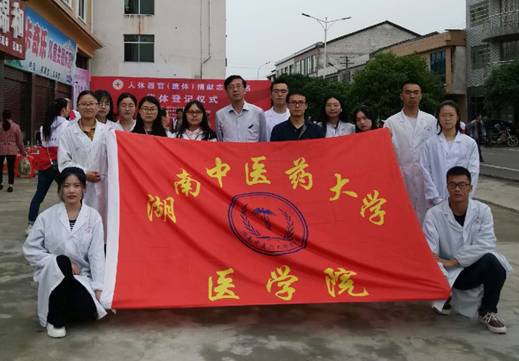 由湖南中医药大学医学院解剖教研室主任李新华教授、杨奔老师带领12名医学院学生参加了湖南省红十字会人体器官捐献管理中心、长沙市红十字会、浏阳市红十字会等共同筹办的“人体器官(遗体)捐献志愿报名集体登记仪式”。