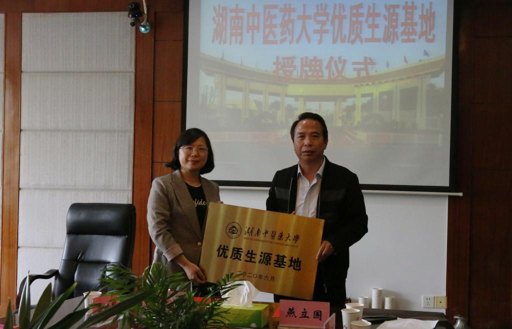 为进一步搭建高校与中学友好合作的平台,4月28日我校优质生源基地挂牌仪式在桃源县第一中学举行,湖南中医药大学医学院党委书记文红艳、副院长雷晓明、学生科李玉冰科长、罗太石老师及桃源县第一中学校长燕立国及中学学校相关人员参加授牌仪式。