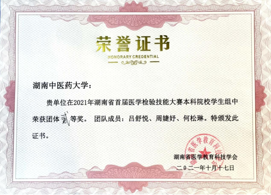 我校医学检验专业代表队在湖南省首届医学检验技能大赛中荣获二等奖