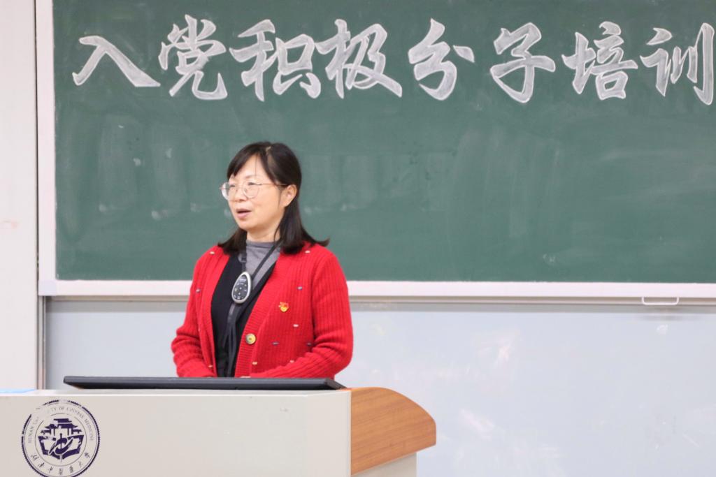 开班仪式结束后,文红艳书记以《党员的基本条件、权利、义务以及党的作风纪律》为题做辅导报告,指出各位学员要坚定“不忘初心,方得始终”的理念,秉持社会主义核心价值观,激励学员要以党的标准严格要求自身、勇于挥洒青春的汗水、肩负起时代的责任,争做新时代青年的中流砥柱。