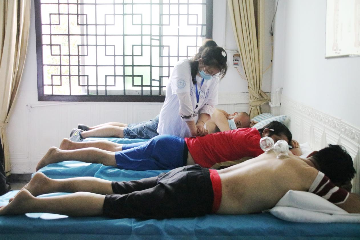 义诊团邀请了西医内科、中医全科、儿科、口腔科、眼科、耳鼻喉、心理健康专家现场开展诊治检查,现场开具药方。免费服务项目包含身高、体重、视力检查、测血压、测血糖、心电图、刮痧、艾灸、拔罐以及儿童口腔涂氟等,连续接诊量300余人。树溪村49岁的糖尿病伴高血压患者杨世华说:“不用出远门,就有专家来看病,送了药还有处方,感谢专家和大学生。”