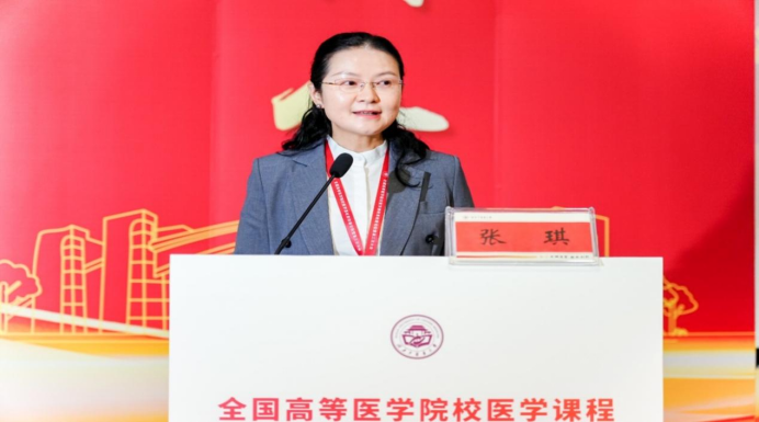 张琪在讲话中,对我校精心筹备会议表示诚挚感谢,并表示希望通过此次会议,进一步深化“四有”好老师内涵研究,破解医学课程思政实践难题,推动理论实践深度融合;通过课程思政联盟加强校际合作,共建共享优质教学资源,打造示范课程,完善师资培训体系,促进医教协同,将专业教育与价值引领深度融合,以仁心培育医术,以情怀铸就担当,共同谱写医学教育的新篇章。