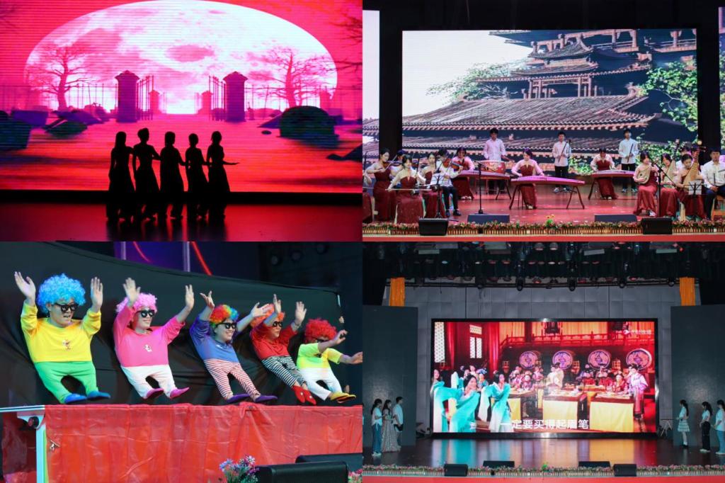 晚会在暖场舞蹈《炙燃》中拉开序幕,乐器演奏《生生世世爱》和歌曲串烧《花与海的毕业歌》,跳动的音符如涓涓细流,将同窗之谊、师生之情娓娓道来。教师们一改往日严谨形象,在舞台剧《重生之我在毕业晚会疯狂摸鱼》中化身欢乐使者,以妙趣横生的手势舞演绎别样风采。视频配音《听诊器旁的青春回响》,院主持人队以声音为媒介,融入幽默段子,展现医学生青春里的点滴欢笑与成长印记。舞蹈串烧《爱的主打歌》,舞者们以动感的节奏与默契的配合,诠释了毕业季的蓬勃朝气。