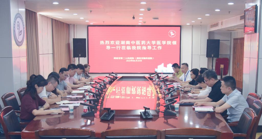 2025年6月25日,医学院与湖南省第二人民医院(湖南中医药大学临床医学院)围绕医教研协同发展举行座谈交流会。医学院党委书记雷晓明、院长成绍武携副院长任婷、唐群、魏科及何迎春教授、办公室张碧一行到访医院。临床医学院党委书记周奇、院长胡崇宇,副院长石小毛、杨农、滕永杰,党委委员张伟、刘坤及医院科研教学部、教研室主任、秘书出席会议。