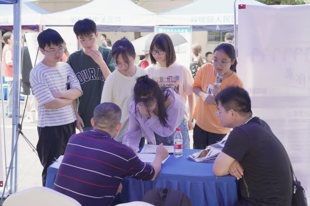 本次招聘会吸引了衡阳市第四人民医院、长沙江氏康复医院等69家优秀企业参加。面向医学院、针灸推拿与康复学院、中西医结合学院提供了超600个优质岗位。应届毕业生们陆续来到招聘现场投递工作简历、询问工作情况。各用人单位招聘负责人通过面对面交流方式,向前来咨询的毕业生介绍了公司和招聘岗位情况,耐心解答毕业生关心的岗位技能需求、薪酬待遇、晋升机会等问题。部分毕业生在现场直接与企业签订了就业意向协议。