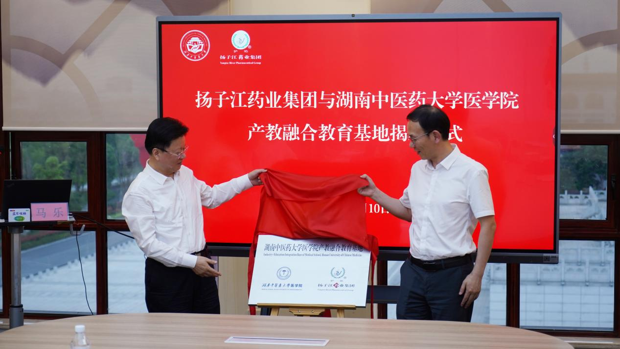 为贯彻落实党中央、教育部关于高校毕业生就业工作的决策部署,促进学院毕业生高质量就业。5月10日,学院党委书记雷晓明带队赴扬子江药业集团开展访企拓岗,并举办“产教融合教育基地”揭牌仪式与座谈交流会。医学院党委副书记李玉冰、学生科长丑天舒陪同参加。