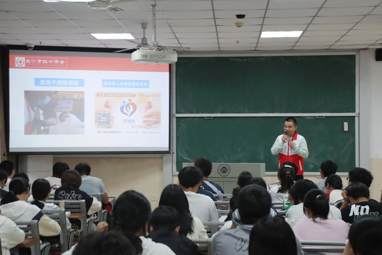 9月24日,为积极响应国家及长沙市关于促进无偿献血、造血干细胞捐献、遗体和人体器官捐献(简称“三献”)事业发展的号召,湖南中医药大学医学院联合长沙市红十字会于含浦校区济世楼307教室成功举办了“三献”宣传进高校首场宣讲活动。本次活动为医学青年搭建了一个深入理解生命价值的平台,通过“三献”知识宣讲与急救技能培训,实现了理论与实践的并举。