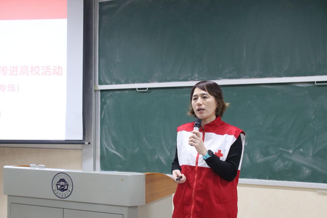 医学院团委书记廖海燕发表开场讲话。她指出,“三献”事业是一项守护生命、促进医学发展、彰显社会文明的崇高公益,并强调举办宣讲会是深入贯彻落实上级文件精神、动员青年学生的重要举措,学院后续将在各年级各专业中持续推进。最后,她勉励同学们认真聆听,掌握这项关乎“性命相托,健康所系”的必备知识与技能,夯实专业基础,履行未来医者的使命担当。