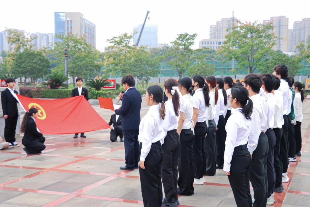 医学院团委副书记卢彦旭领誓,全体师生面向团旗,高举右拳,重温入团誓词。铿锵的誓言回荡在现场每一位师生心中。随后,各班级学生代表、发展团员及青年团员代表依次在主题横幅上郑重签名。誓言与笔触,共同表达了师生们传承红色基因、担当时代使命的坚定决心。本次升旗仪式在庄重的氛围中圆满落幕。