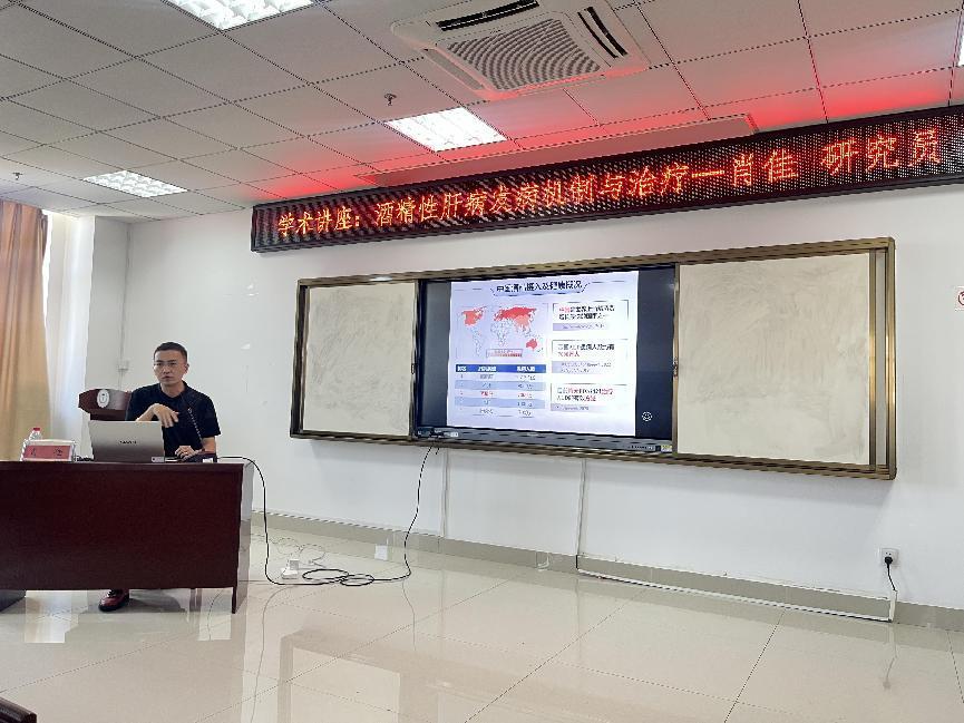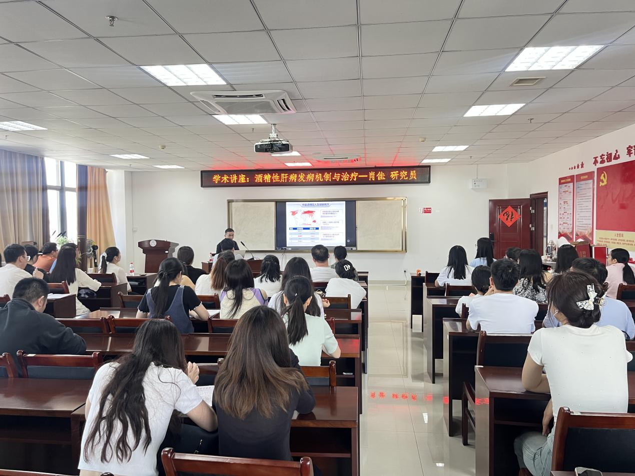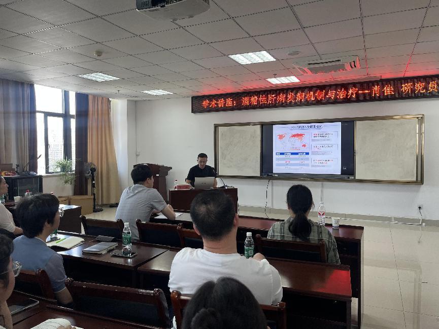 肖佳研究员讲座题为《酒精性肝病发病机制与药物治疗》,他向大家主要讲解了治疗酒精性肝病的新机制、新靶点和新药物。首先介绍了酒精性肝病的流行病学研究,进一步发现了携带乙肝病毒更易患酒精性肝病的新的分子机制,以及干预酒精性肝病新靶点-骨骼肌细胞膜受体ATGR1和MAS1,最后发现褪黑素、茶多酚、枸杞小分子化合物等通过不同的通路对酒精性肝病有改善作用。