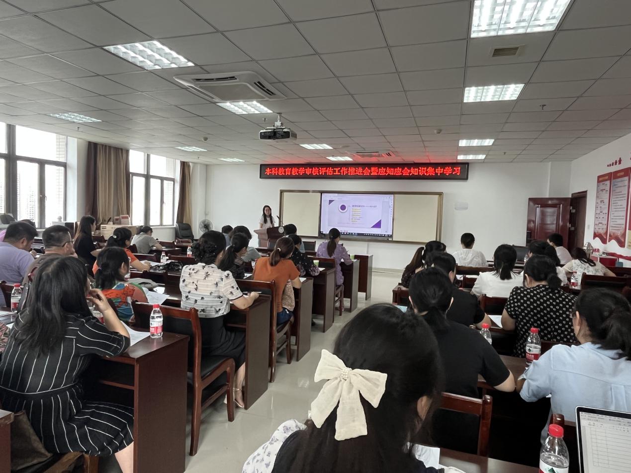 9月5日,我院召开本科教育教学审核评估工作推进会暨应知应会知识集中学习。会议由院长庹勤慧主持,学院院党政工作人员、各教研室主任、副主任、秘书参加会议。