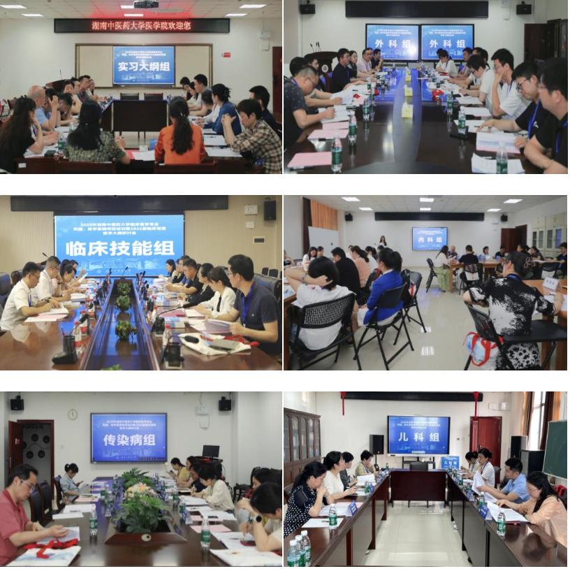 与会人员分成内科学组、外科学组、儿科学组、传染病学组及临床技能组,课程负责人组织骨干教师开展2022版教学大纲的修订。同时,临床医学专业负责人组织各附属医院教学管理干部及各学科教师代表进行实习大纲修订,围绕实习流程优化、技能考核标准完善等形成建设性方案。