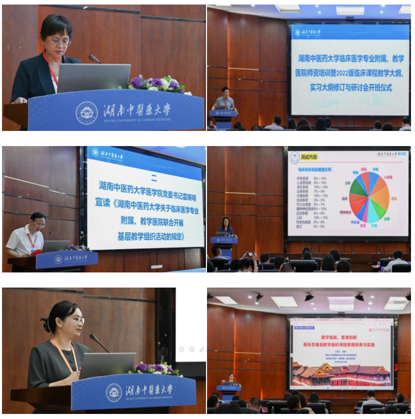 首日会议重点聚焦教学、实习大纲修订与基层教学组织建设,大会由湖南中医药大学医学院院长成绍武主持。湖南中医药大学副校长喻嵘在开班仪式上强调,要持续推进临床教学同质化和标准化建设,提升临床教学质量。湖南中医药大学医学院党委书记雷晓明宣读《关于湖南中医药大学临床医学专业附属、教学医院联合开展基层教学组织活动的规定》文件,副院长任婷解析临床医学专业水平测试标准。中南大学黄颖教授作《数字赋能 管理创新——新形态基层教研室本科课程管理》专题讲座,分享智能化教学平台建设经验。
