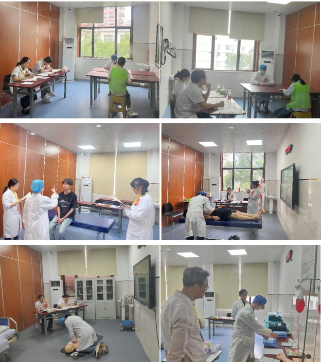 水平测试由学校教务处统筹,下设理论考试组、技能考试组、学生协调组及后勤保障组,协同完成考务管理、考官遴选、场地布置、志愿者服务等工作。技能考试设置4个考组、24个考站,共考核13轮,测试内容涵盖病史采集、体格检查、基本操作等核心临床技能。