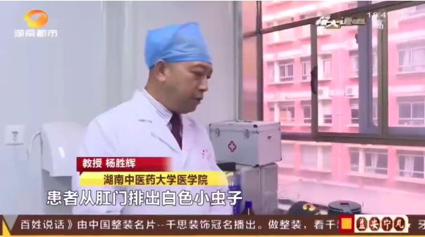 近日,一位42岁的永州女性患者因肛门瘙痒,肛门竟有白色虫体爬出,先后前往湖南省人民医院和湘雅二医院就诊。在服用阿苯达唑片(肠虫清)后未能将虫体排出,患者又于8月28日就诊于湖南中医药大学附属医院消化内科的祁双林医生,祁医生通过多种途径找到我校医学院预防医学教研室的杨胜辉教授,杨老师采用纯中药(生南瓜子加槟榔水煎液)为患者进行驱虫治疗,只用了一次药就解除了患者疾病困扰。
