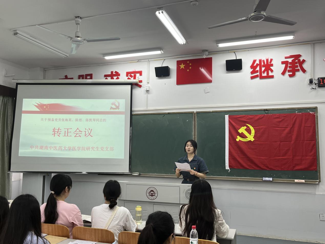 2023年5月22日星期一上午10点,医学院研究生党支部在1201教室召开预备党员转正会议。本次大会讨论张海英、陈煜、陈凯琴3名预备党员转为正式党员。大会由支部副书记王雯主持,参加此次会议的还有刘娅薇书记等20名正式党员,15名预备党员。