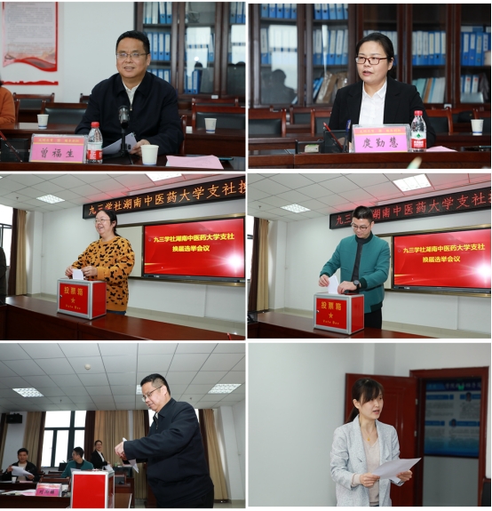 11月2日上午,九三学社湖南中医药大学支社换届选举会议在医学院会议室召开。九三学社省委机关省管二级巡视员刘福全、湖南中医药大学(省中医药研究院)党委副书记易刚强出席,九三学社省委常委、湖南中医学大学副校长曾福生主持。