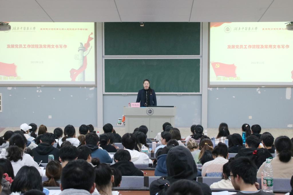 11月15日至11月20日,医学院分党校成功举办第九期入党积极分子党课培训班。本次培训班由医学院党委书记文红艳,宣传统战部部长章小纯,机关党委书记宋翠萍,医学院党委副书记任婷,学生科副科长廖海燕开展授课,为260名培训班学员进行系统而规范地教学。