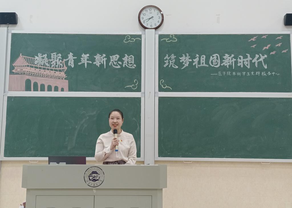 2022年是党的二十大召开之年,也是中国共青团成立100周年。为贯彻落实“十四五”规划,激励新时代青年肩负起强国新征程的使命与担当,医学院本科学生党群服务中心于5月6日在3417教室开展“凝聚青年新思想,筑梦祖国新时代”集体学习活动。医学院学生党支部全体党员、医学院2022年上半年发展对象、医学院本科学生党群服务中心全体成员和“荟萃—学生骨干培养工程”全体学员参加了此次学习活动。