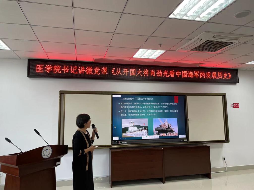 11月8日,医学院党委书记文红艳在学院会议室为职工党员上了一堂题为“从开国大将肖劲光看中国海军的发展历史”的微党课,学院职工党员参加学习。