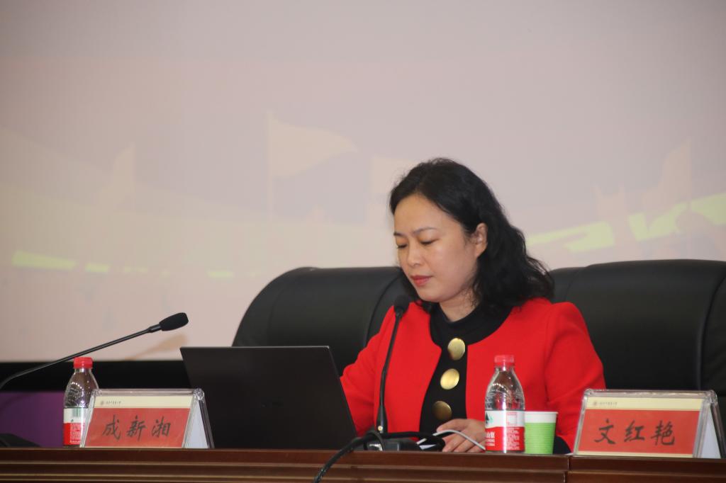 文红艳书记对此次报告会给予了高度评价,对成新湘代表的精彩分享表示充分肯定和衷心感谢。她号召全体师生要积极贯彻“两会”精神,结合学院学科发展特色与优势,做到学思用贯通、知信行统一,真正将“两会”精神落地生花,上下同心,助推学院高质量发展。