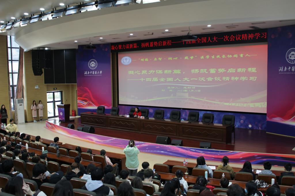 会上,成新湘代表传达了此次“两会”的主要内容及会议精神,就习近平总书记全国两会上的重要讲话精神和本次政府工作报告进行重点解读。成新湘结合自身在湘绣非遗传承方面的丰富阅历和专业见解,以“绣花精神”为内核,寄语我院学子要坚定文化自信,积极发扬“工匠精神”,以时不我待、只争朝夕的精神练就过硬本领,为建设富强民主文明和谐美丽的社会主义现代化强国贡献青春力量。