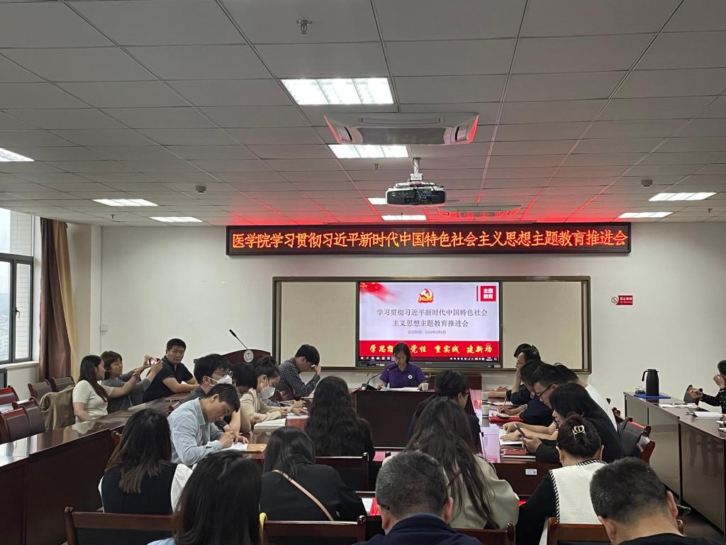 为扎实推进医学院学习贯彻习近平新时代中国特色社会主义思想主题教育工作,我院于5月6日上午召开主题教育工作推进会,院党委书记文红艳作主持,全体教师党员参会。