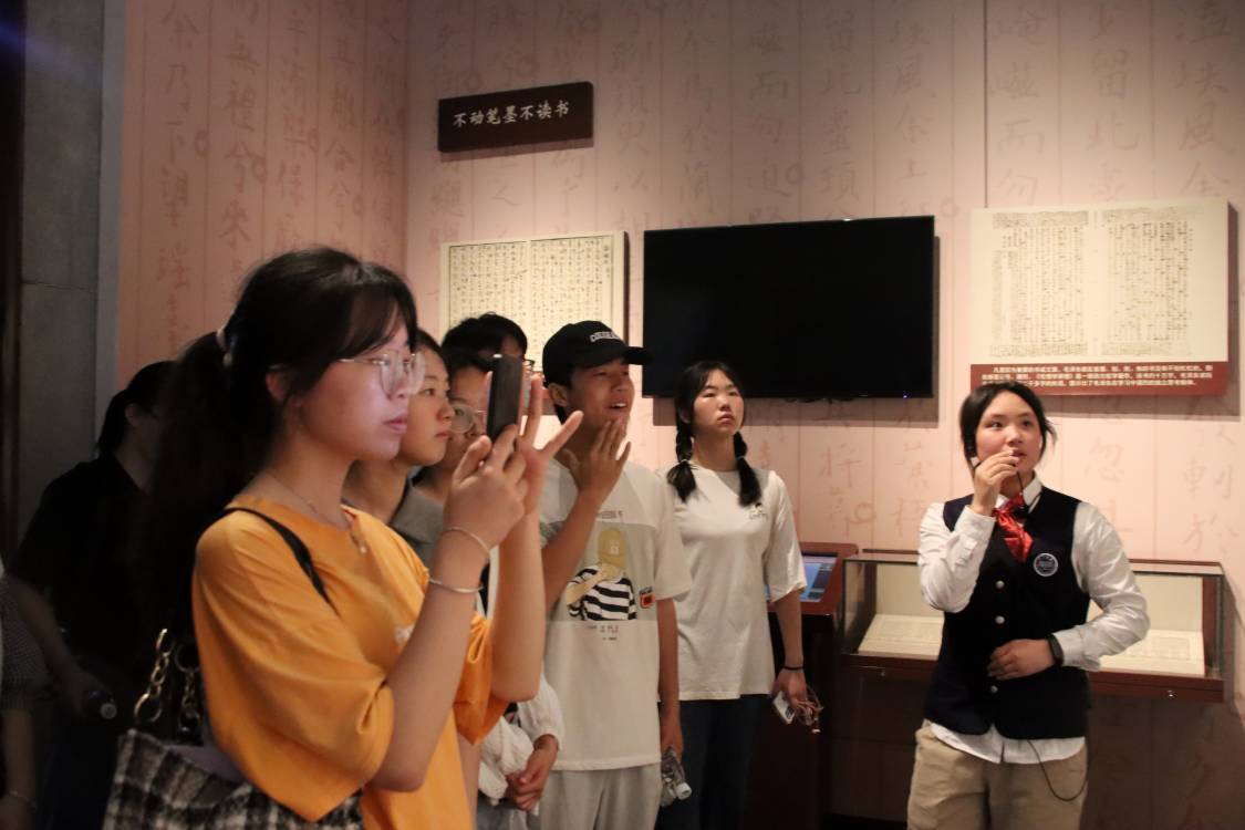 穿行于毛泽东主席的母校,讲解员徐徐铺陈开这位伟人求学的经历与革命的历史。从大厅到第五展厅,入党积极分子们回顾了青年毛泽东闹市读书、寝室三不谈、结交良师益友的故事,探索他背后创办新民学会、组织湖南五四运动、寻找救国之路的曲折路径。