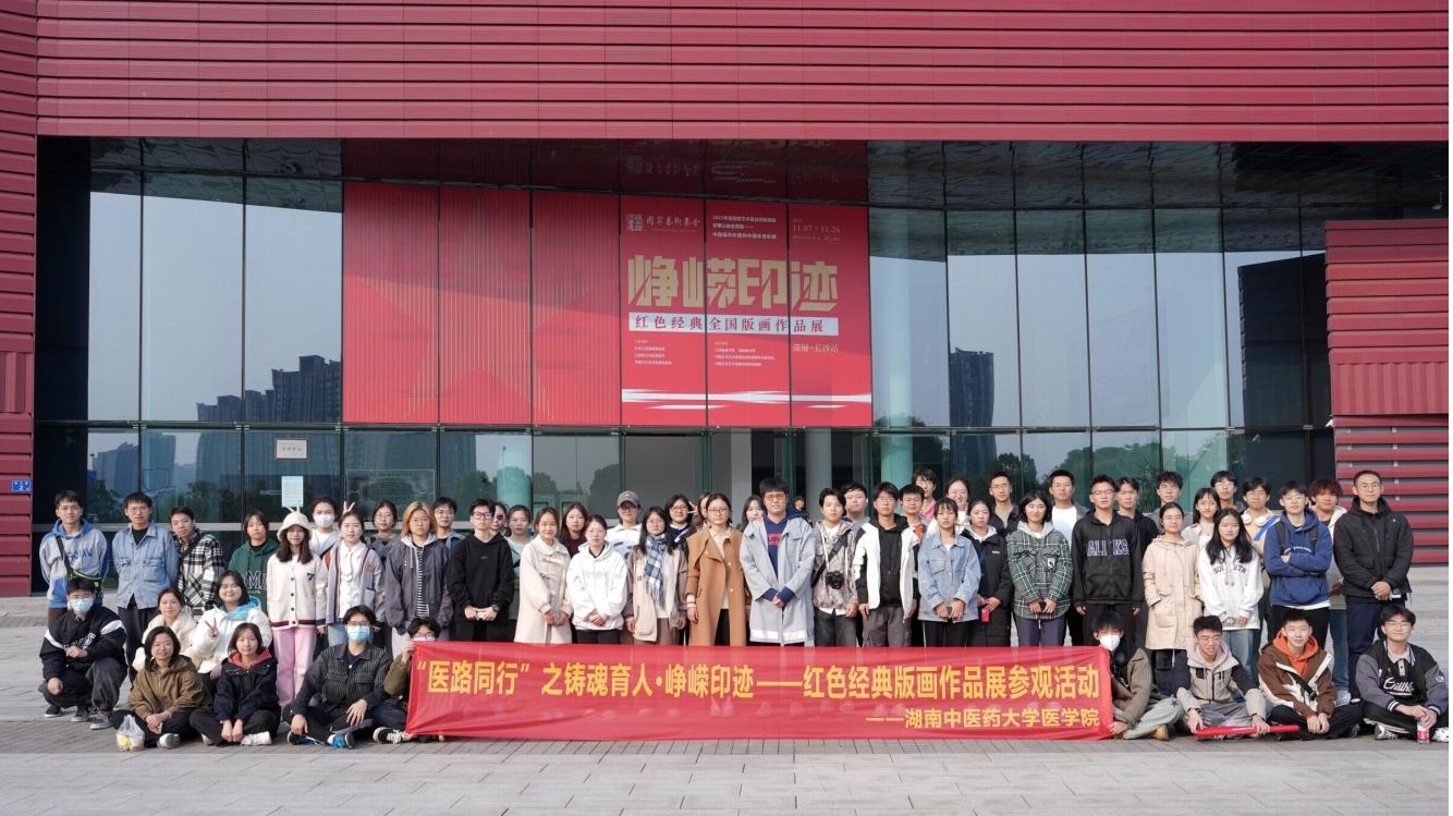 为推动高校党团班组织在青年工作中发挥积极作用,促进党建工作与青年工作相互融合,深化“医学生适应性教育”的组织建设,传承红色基因,落实学校“新时代学生工作实践工程项目”要求。11月25日,医学院第七学生党支部联合临床医学2022级、2023级专业班级团支部来到湖南美术馆参观“峥嵘印迹——红色经典全国版画作品展”并开展党史学习,辅导员颜晔老师为同学们做一堂“美育与党史融合的思政课”。