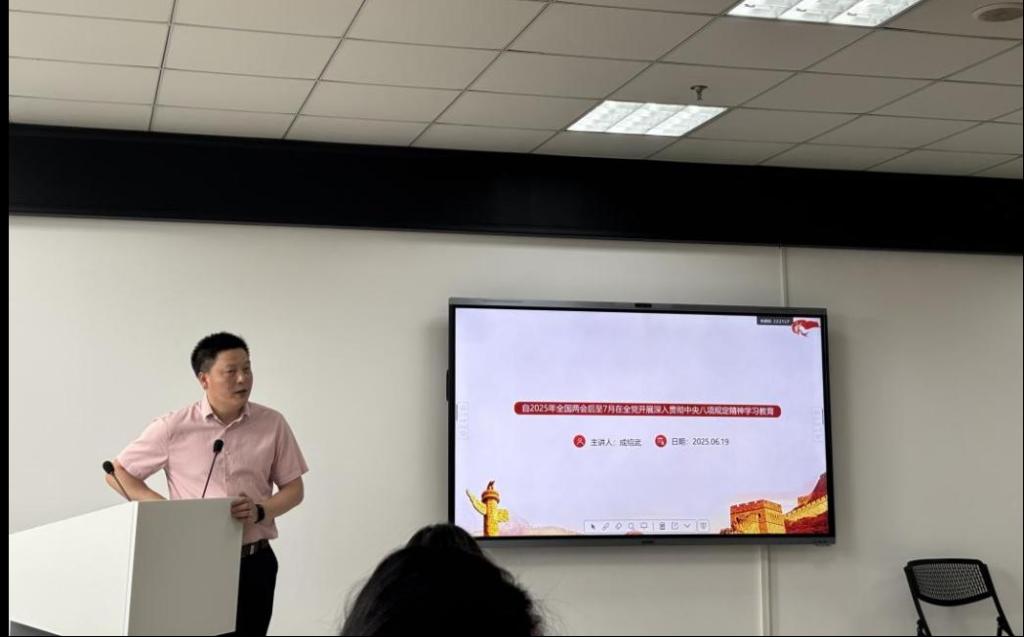 “新八项禁令”并非独立的新政策,而是对中央八项规定精神的细化和延伸。党课上,成绍武院长带领全体党员原原本本、逐字逐句学习了2025年中央修订升级的“新八项禁令”及其实施细则的具体内容,并结合实际案例,对各项规定进行了详细解读。通过深入剖析典型案例,让党员干部深刻认识到违反中央八项规定精神问题产生的根源和危害,切实增强了政治自觉、思想自觉和行动自觉。