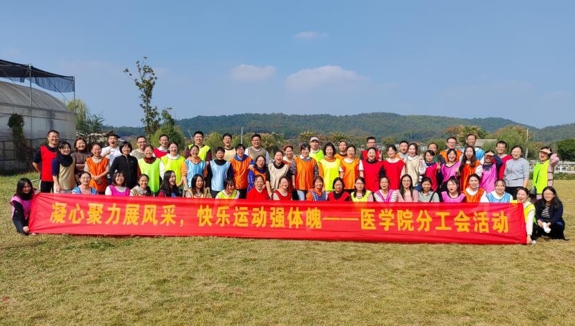 为进一步学习贯彻落实党的二十大精神,丰富教职工课余文体生活,提升集体荣誉感与合作意识,医学院分工会于11月20日在沃之园生态农庄开展“凝心聚力展风采,快乐运动强体魄”团建活动。活动主要分为“同心鼓”、“飞盘投掷赛”、“旱地冰壶”三个环节,内容精彩纷呈、扣人心弦,大家都表现出极高的参与热情。